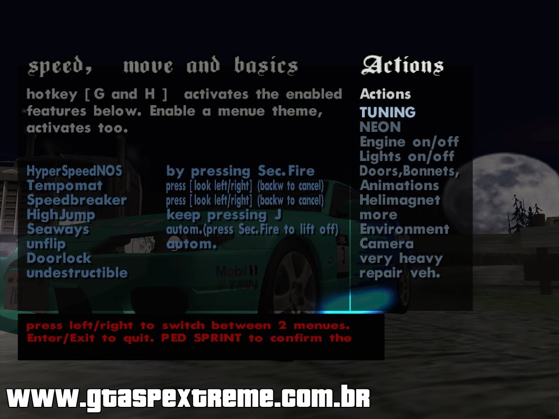 Para executar esse mod você precisa da LIVRARIA CLEO 3, depois de ter a livraria em seu PC apenas coloque o arquivo na pasta CLEO e no jogo precione TAB + H para soltar a magia!
